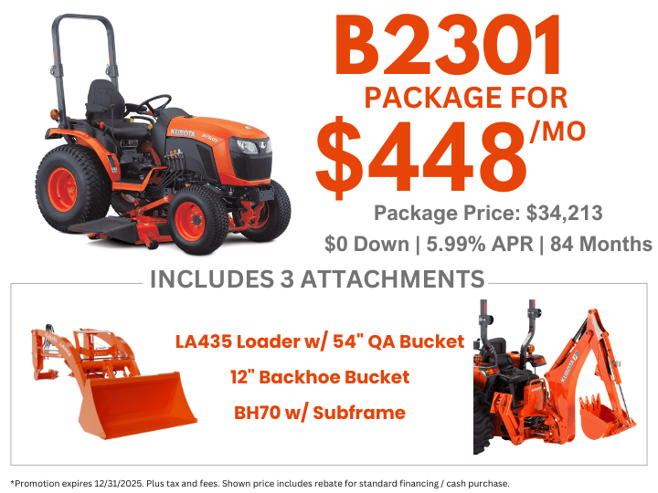 0% APR available or save up to $4,500 on your new Kubota TLB Series!